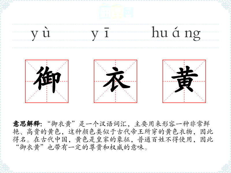 同义词:皇黄、帝黄、金黄色 反义词:暗黄、土黄、灰黄