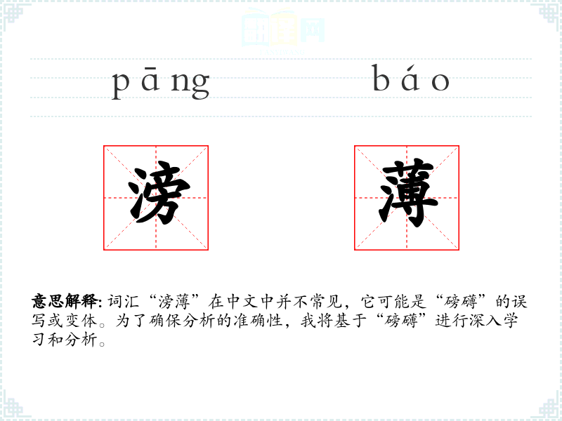 词汇“滂”在中文中并不常见,它可能是“磅礴”的误写或变体。为了确保分析的准确性,我将基于“磅礴”进行深入学和分析。