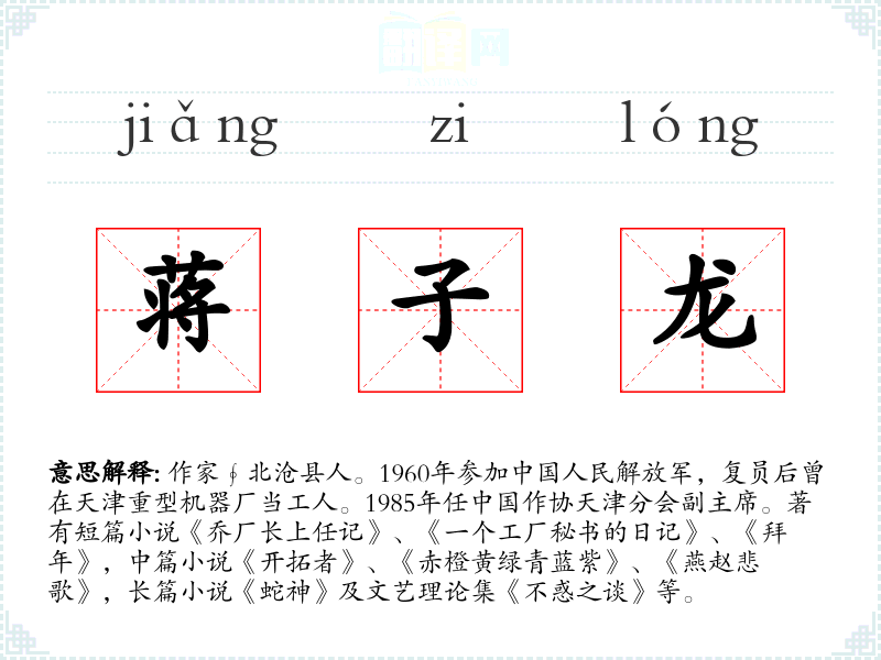 1.作家∮北沧县人。1960年参加中国人民解放军,复员后曾在天津重型机器厂当工人。1985年任中国作协天津分会副主席。著有短篇小说《乔厂长上任记》、《一个工厂秘书的日记》、《拜年》,中篇小说《开拓者》、《赤橙黄绿青蓝紫》、《燕赵悲歌》,长篇小说《蛇神》及文艺理论集《不惑之谈》等。