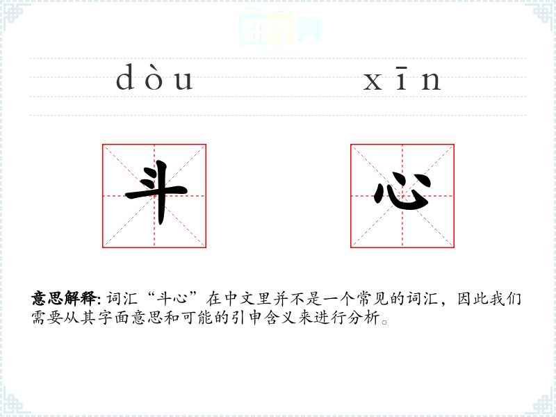 词汇“斗心”在中文里并不是一个常见的词汇,因此我们需要从其字面意思和可能的引申含义来进行分析。
