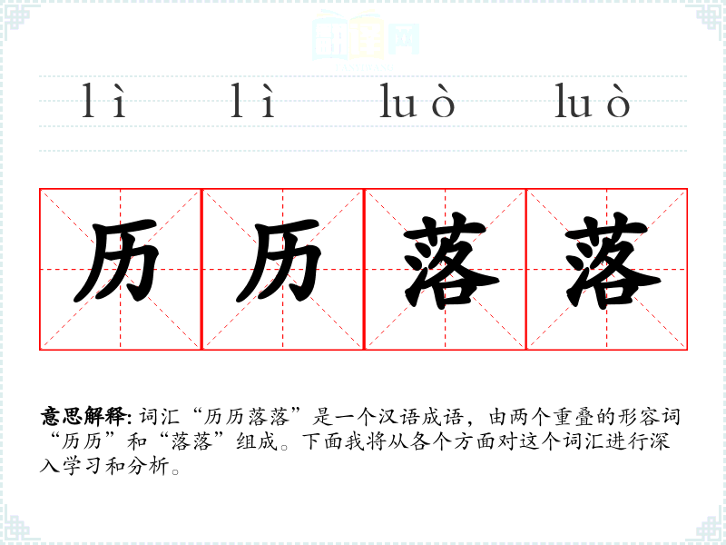 词汇“历历落落”是一个汉语成语,由两个重叠的形容词“历历”和“落落”组成。下面我将从各个方面对这个词汇进行深入学*和分析。