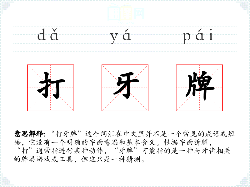 由于“打牙牌”不是一个标准词汇,它在不同语言或文化中的对应词汇及其使用情况不详。