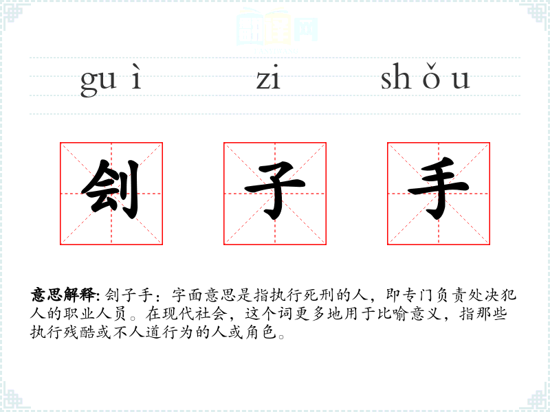 "刽子手"的意思解释、刽子手是什么意思由翻译网汉语词典查词提供。