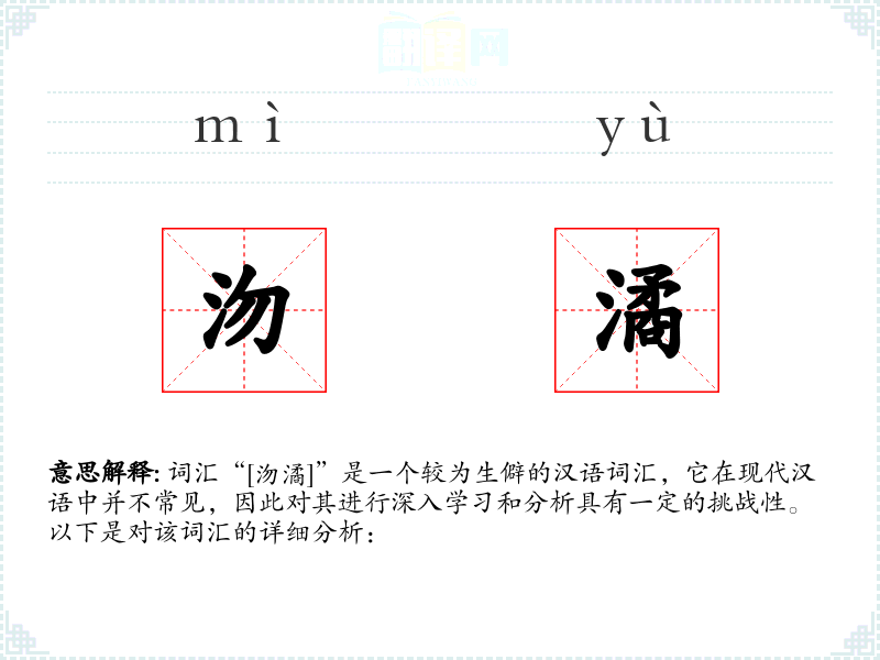 词汇“[沕潏]”是一个较为生僻的汉语词汇,它在现代汉语中并不常见,因此对其进行深入学习和分析具有一定的挑战性。以下是对该词汇的详细分析: