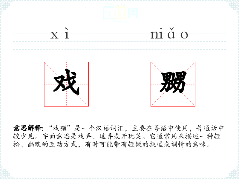 “戏嬲”源自粤语,其字面组合“戏”和“嬲”分别表示游戏和生气,但在组合使用时,意义发生了变化,更多地指向一种轻松的互动方式。