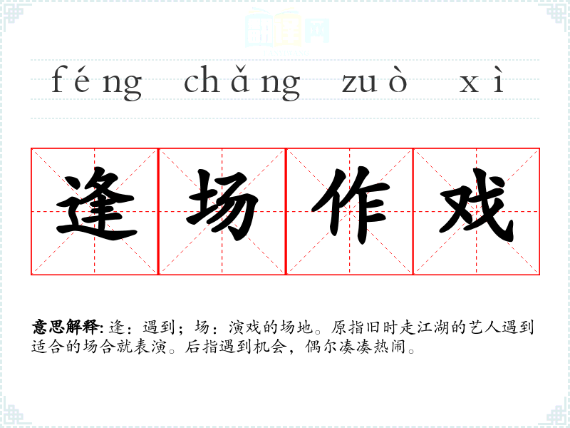 逢:遇到;场:演戏的场地。原指旧时走江湖的艺人遇到适合的场合就表演。后指遇到机会,偶尔凑凑热闹。