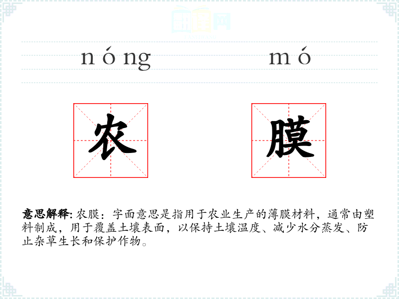 "农膜"的意思解释、农膜是什么意思由翻译网汉语词典查词提供。