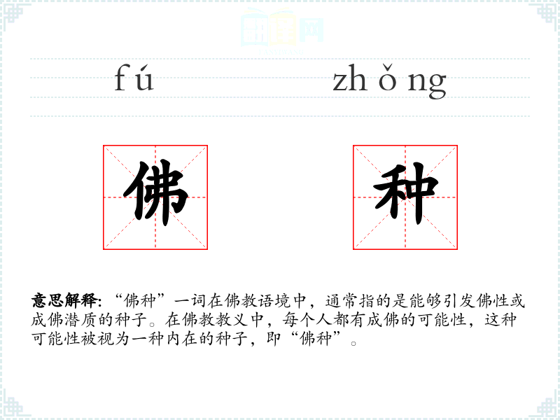 “佛种”一词在语境中,通常指的是能够引发佛性或成佛潜质的种子。在教义中,每个人都有成佛的可能性,这种可能性被视为一种内在的种子,即“佛种”。
