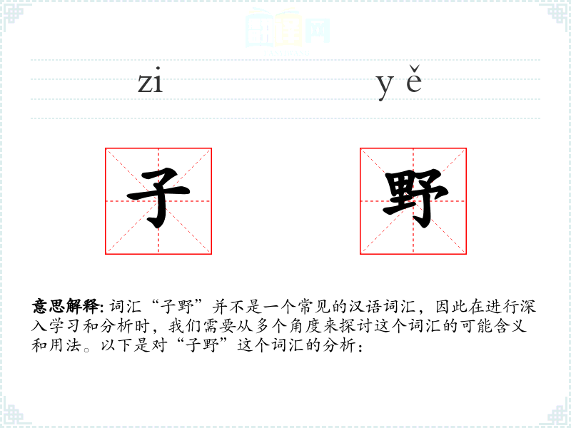 词汇“子野”并不是一个常见的汉语词汇,因此在进行深入学习和分析时,我们需要从多个角度来探讨这个词汇的可能含义和用法。以下是对“子野”这个词汇的分析: