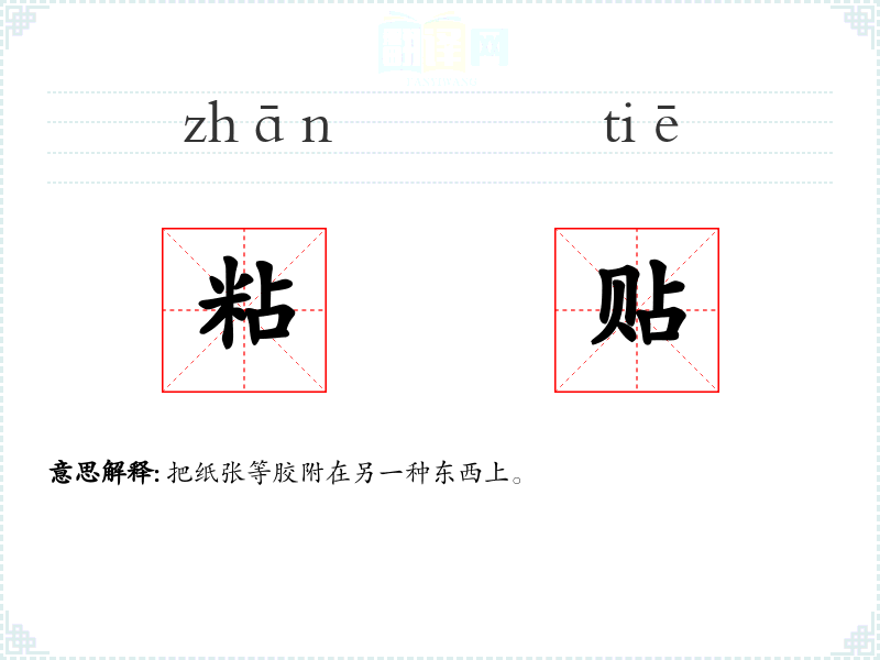 粘贴的分字解释