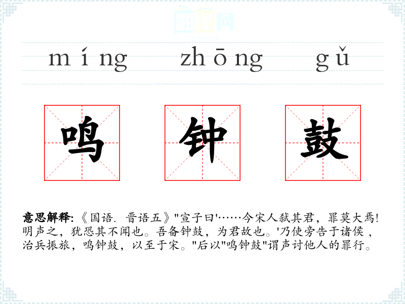 鸣钟鼓的分字解释
