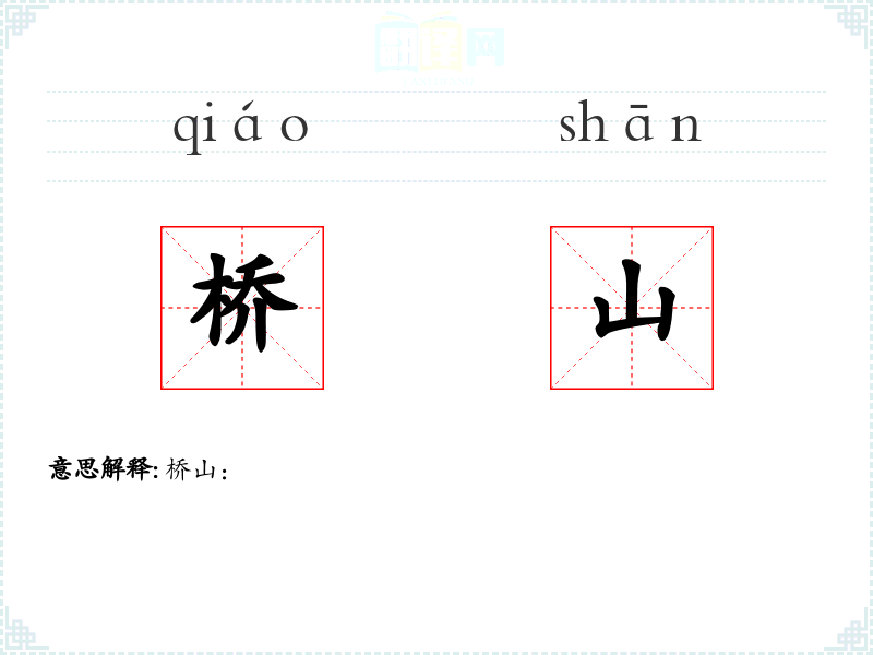 - 字面意思:桥山通常指的是一座山,其名称可能来源于山形似桥或山上有桥。