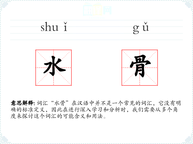 由于“水骨”不是一个标准词汇,我们可以尝试从字面意思来解释: