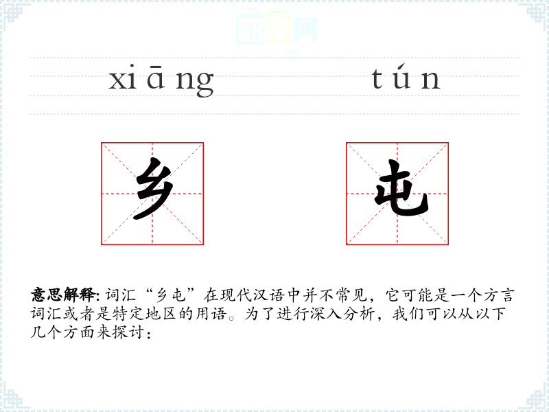 词汇“乡屯”在现代汉语中并不常见,它可能是一个方言词汇或者是特定地区的用语。为了进行深入分析,我们可以从以下几个方面来探讨:
