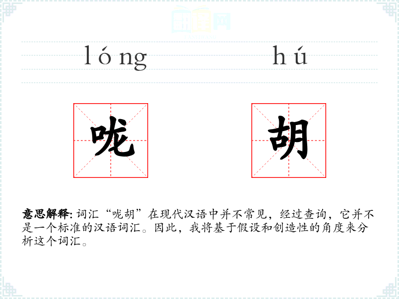 词汇“咙胡”在现代汉语中并不常见,经过查询,它并不是一个标准的汉语词汇。因此,我将基于假设和创造性的角度来分析这个词汇。