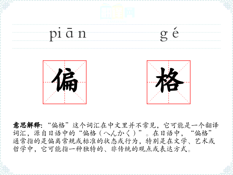 “偏格”作为一个翻译词汇,其词源直接来自日语。在日语中,“偏格”一词的使用可以追溯到对文学和艺术作品的描述,后来逐渐扩展到其他领域,如社会学和心理学。