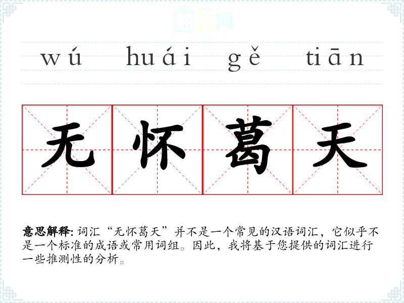 词汇“无怀葛天”并不是一个常见的汉语词汇,它似乎不是一个标准的成语或常用词组。因此,我将基于您提供的词汇进行一些推测性的分析。