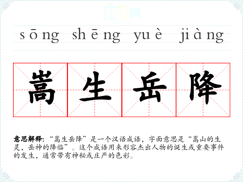 “嵩生岳降”这个成语不仅丰富了汉语的表达,也体现了对历史和英雄的尊重。在语言学*和表达中,理解和运用这样的成语可以增强语言的深度和美感。