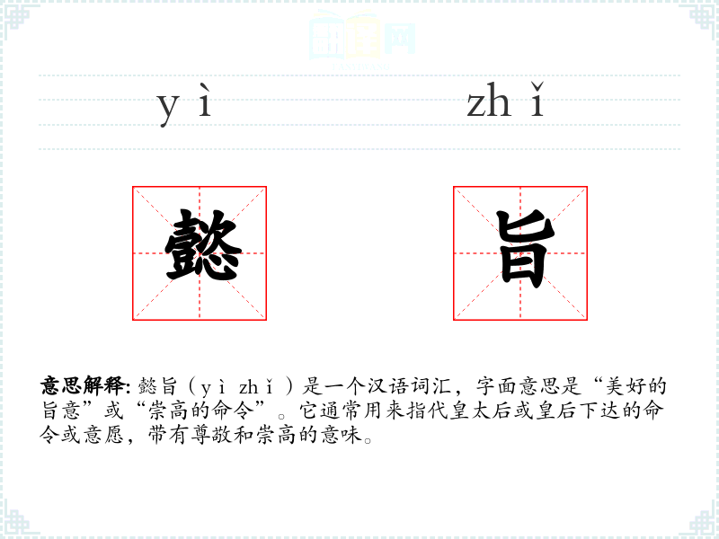 反义词:无(由于懿旨具有特定的历史和文化背景,通常没有直接的反义词)