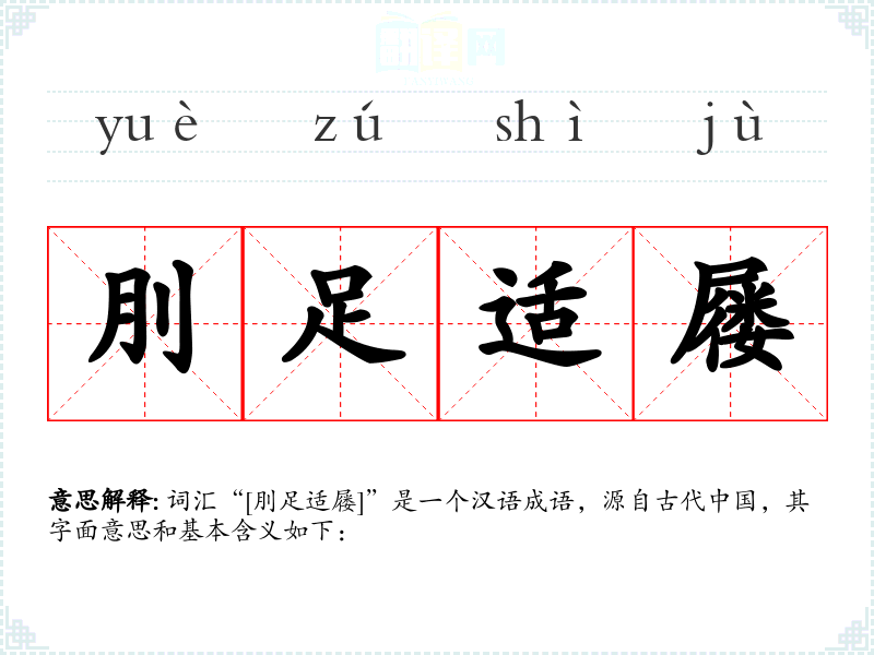 词汇“[刖足适屦]”是一个汉语成语,源自古代**,其字面意思和基本含义如下:
