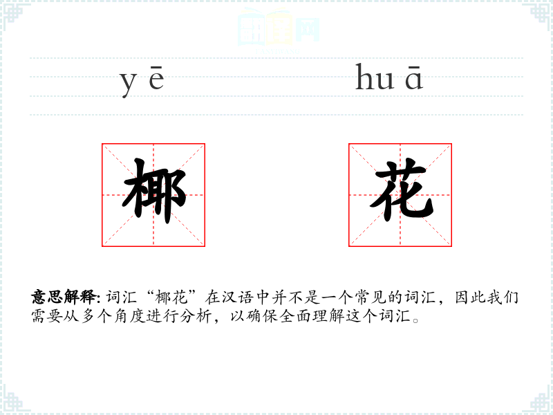 词汇“椰花”在汉语中并不是一个常见的词汇,因此我们需要从多个角度进行分析,以确保全面理解这个词汇。