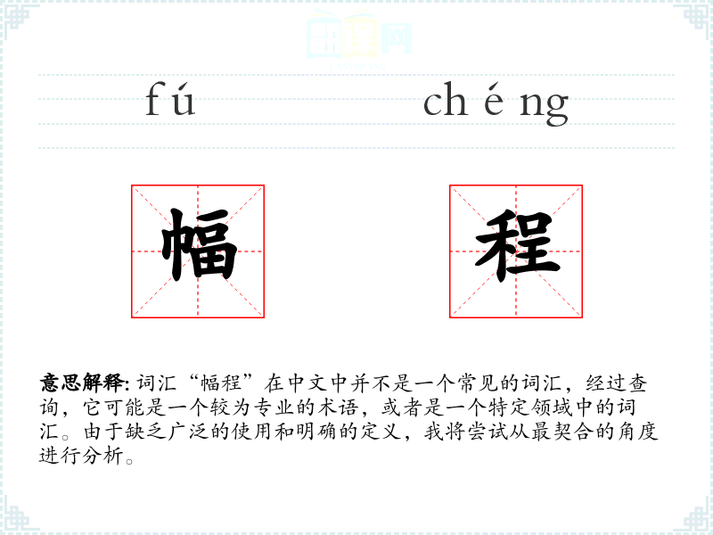词汇“幅程”在中文中并不是一个常见的词汇,经过查询,它可能是一个较为专业的术语,或者是一个特定领域中的词汇。由于缺乏广泛的使用和明确的定义,我将尝试从最契合的角度进行分析。