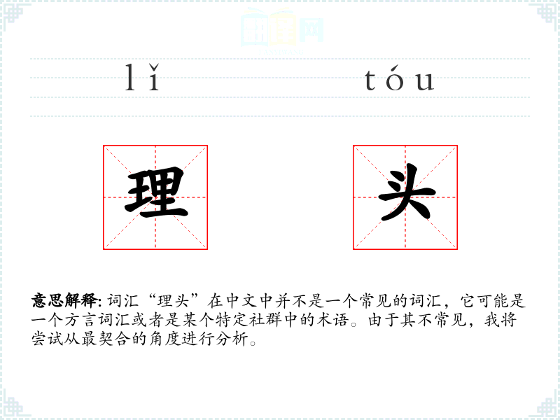 词汇“理头”在中文中并不是一个常见的词汇,它可能是一个方言词汇或者是某个特定社群中的术语。由于其不常见,我将尝试从最契合的角度进行分析。