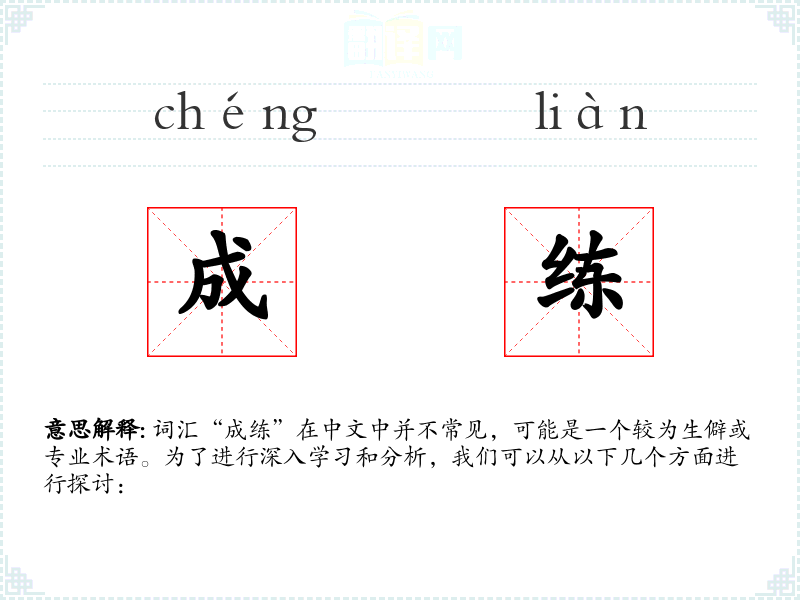 词汇“成练”在中文中并不常见,可能是一个较为生僻或专业术语。为了进行深入学习和分析,我们可以从以下几个方面进行探讨: