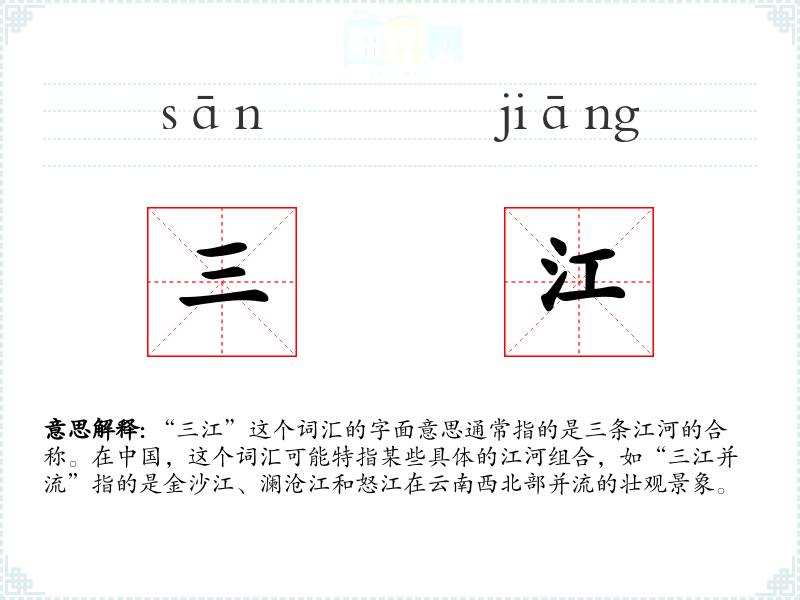 "三江"的意思解释、三江是什么意思由翻译网汉语词典查词提供。