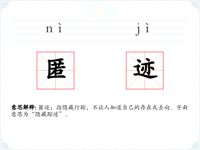 匿迹:指隐藏行踪,不让人知道自己的存在或去向。字面意思为“隐藏踪迹”。