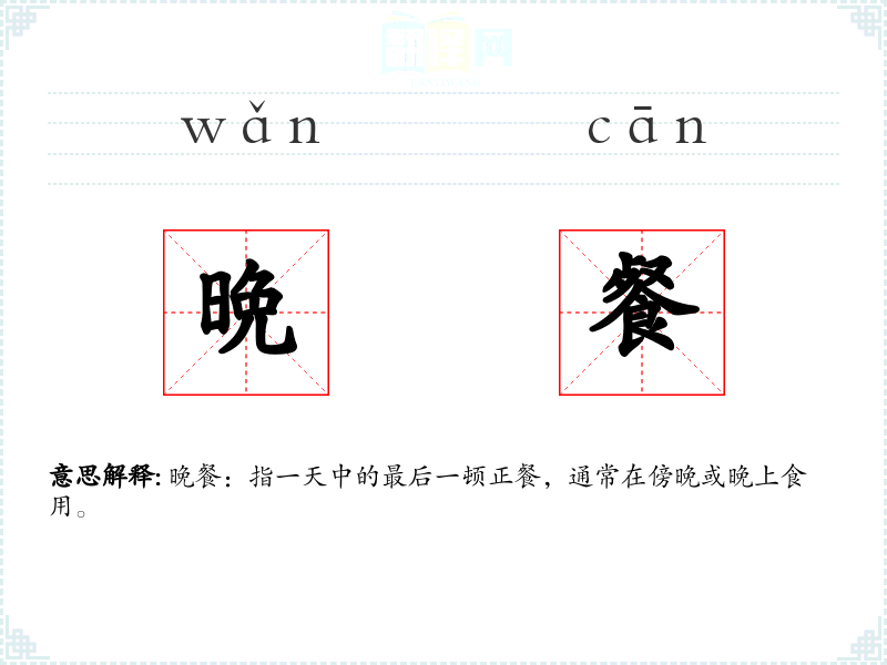 - 同义词:晚宴、晚饭