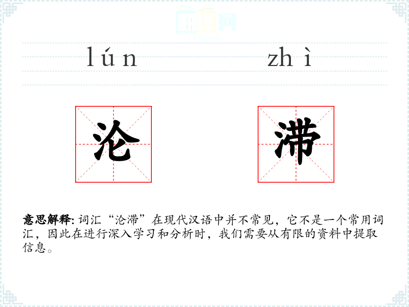 词汇“沦滞”在现代汉语中并不常见,它不是一个常用词汇,因此在进行深入学习和分析时,我们需要从有限的资料中提取信息。