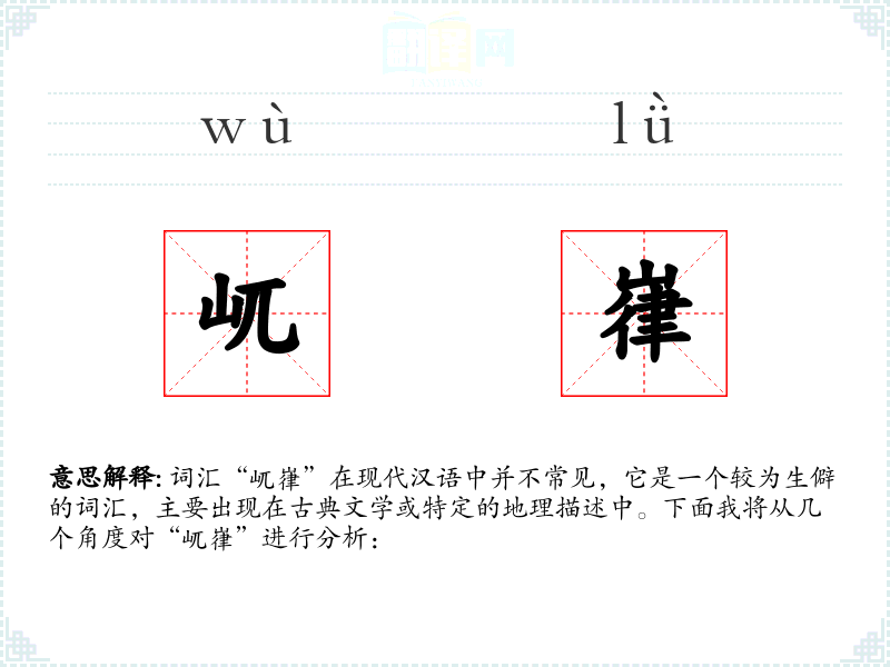 词汇“屼嵂”在现代汉语中并不常见,它是一个较为生僻的词汇,主要出现在古典文学或特定的地理描述中。下面我将从几个角度对“屼嵂”进行分析: