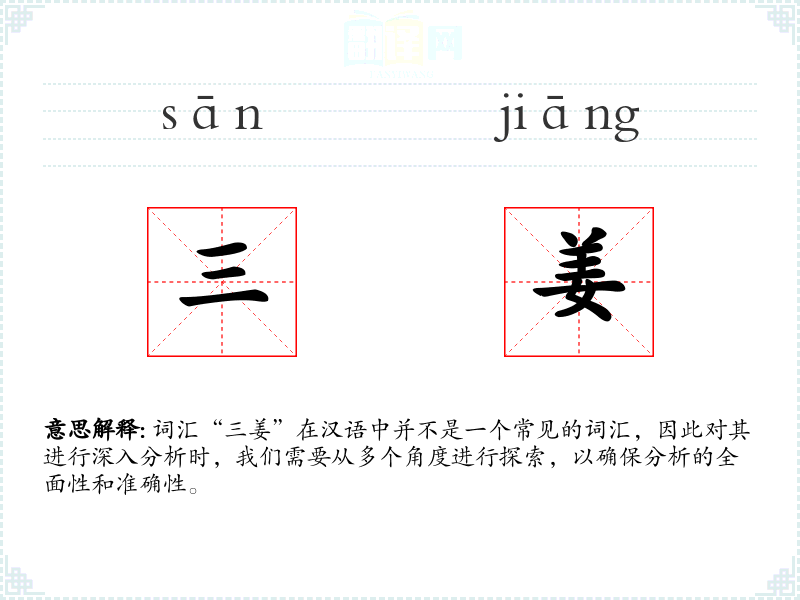 词汇“三姜”在汉语中并不是一个常见的词汇,因此对其进行深入分析时,我们需要从多个角度进行探索,以确保分析的全面性和准确性。