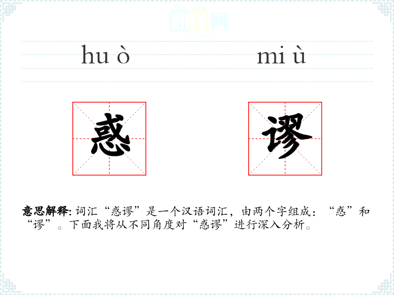 词汇“惑谬”是一个汉语词汇,由两个字组成:“惑”和“谬”。下面我将从不同角度对“惑谬”进行深入分析。