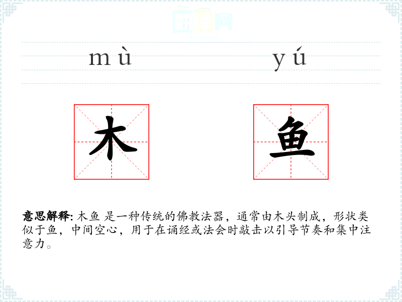- 专业领域:在研究或仪式中,木鱼是一个专业术语,指代特定的法器。