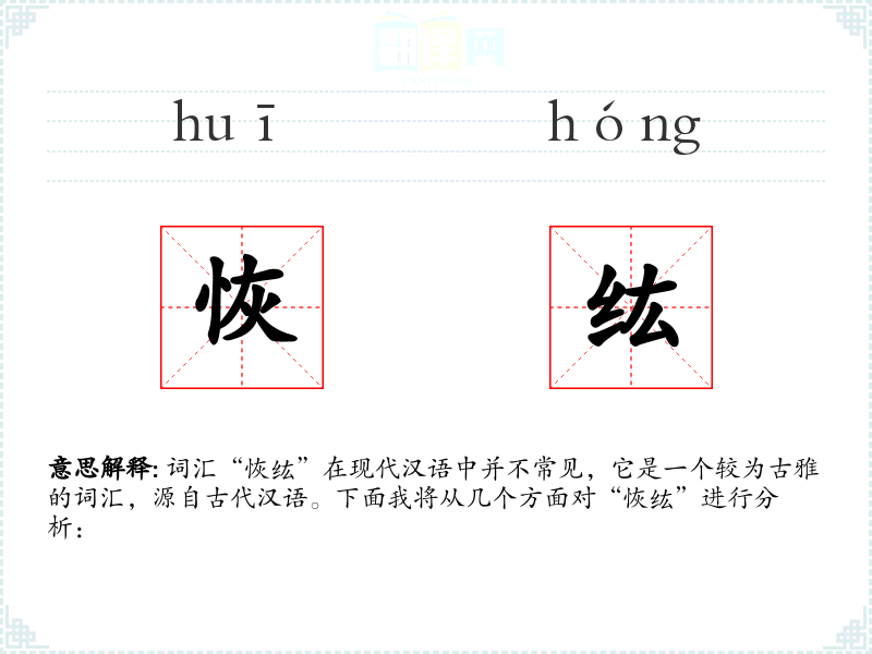 词汇“恢纮”在现代汉语中并不常见,它是一个较为古雅的词汇,源自古代汉语。下面我将从几个方面对“恢纮”进行分析: