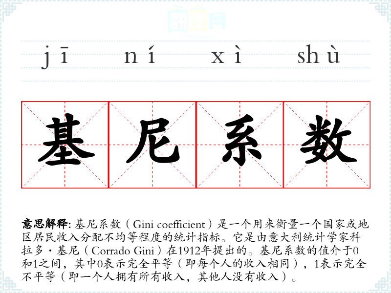 - 同义词:收入不平等指数、财富分配系数