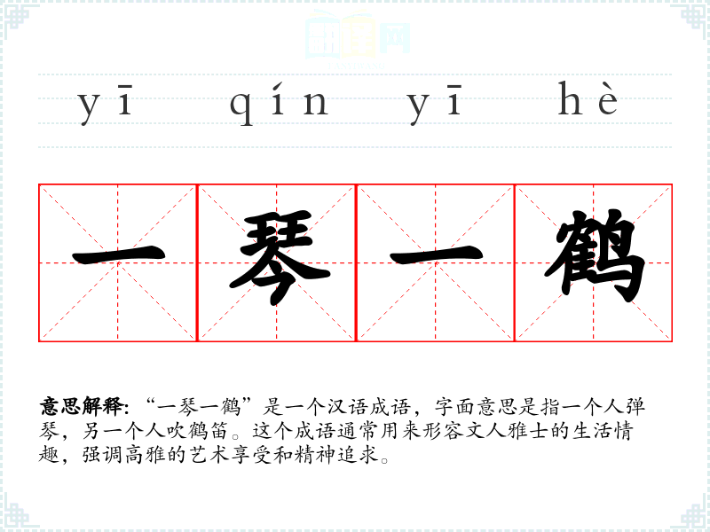 “一琴一鹤”是一个汉语成语,字面意思是指一个人弹琴,另一个人吹鹤笛。这个成语通常用来形容文人雅士的生活情趣,强调高雅的艺术享受和精神追求。