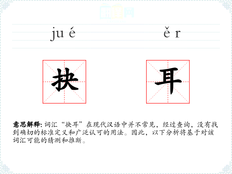 - 反义词:无(由于“抉耳”不是一个常用词汇,反义词不明确)