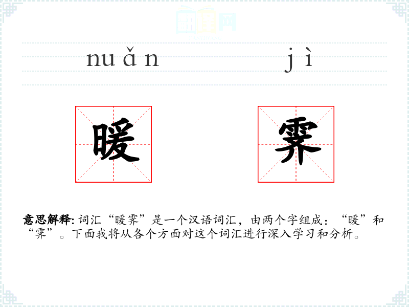 词汇“暖霁”是一个汉语词汇,由两个字组成:“暖”和“霁”。下面我将从各个方面对这个词汇进行深入学*和分析。
