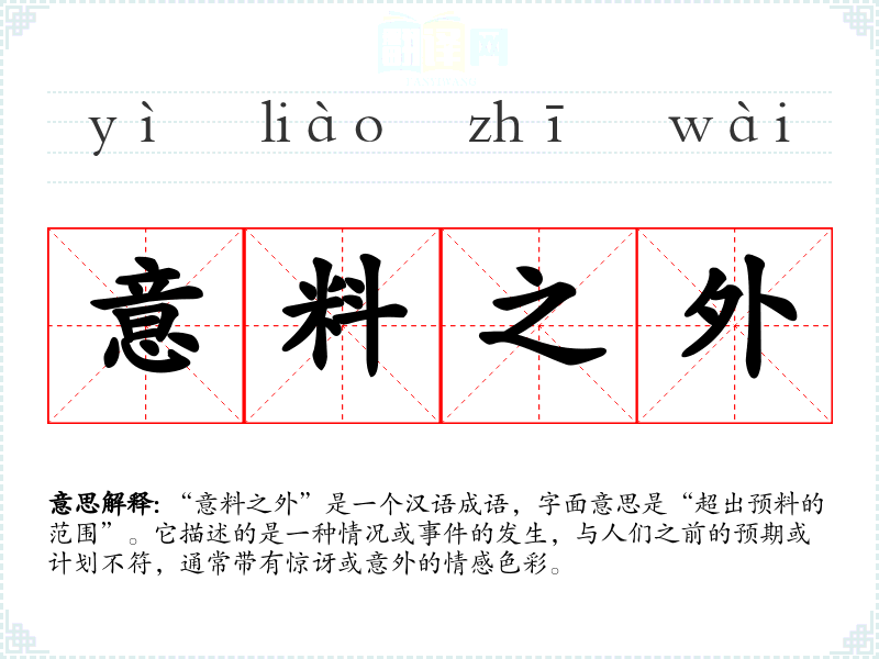 在**文化中,“意料之外”常常与“天意”或“命运”联系在一起,反映了一种对不可预测性和命运安排的认知。在社会交往中,这个词汇也常用来表达对他人的惊讶或赞赏。