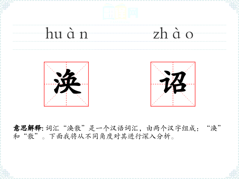 “涣”字古义有水流散开的意思,“散”字则有分散、散开之意。两个字组合起来,强化了分散、松散的含义。
