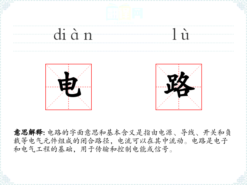 电路的字面意思和基本含义是指由电源、导线、开关和负载等电气元件组成的闭合路径,电流可以在其中流动。电路是电子和电气工程的基础,用于传输和控制电能或信号。