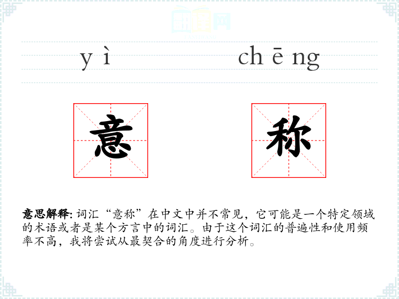 词汇“意称”在中文中并不常见,它可能是一个特定领域的术语或者是某个方言中的词汇。由于这个词汇的普遍性和使用频率不高,我将尝试从最契合的角度进行分析。
