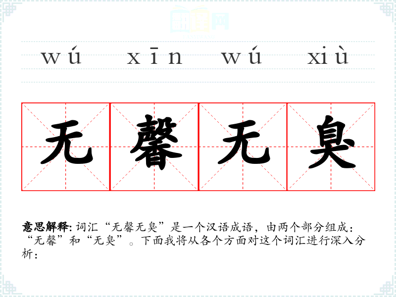 词汇“无馨无臭”是一个汉语成语,由两个部分组成:“无馨”和“无臭”。下面我将从各个方面对这个词汇进行深入分析: