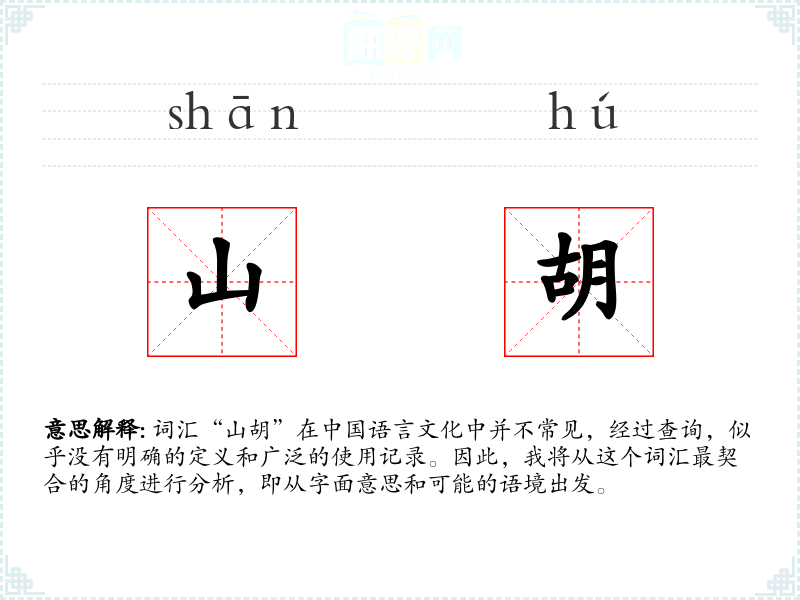 词汇“山胡”在**语言文化中并不常见,经过查询,似乎没有明确的定义和广泛的使用记录。因此,我将从这个词汇最契合的角度进行分析,即从字面意思和可能的语境出发。
