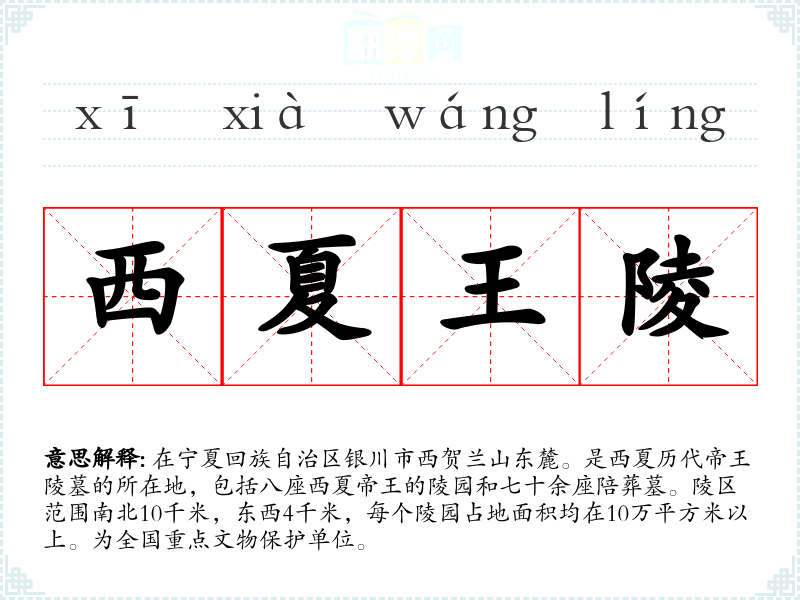 "西夏王陵"的意思解释、西夏王陵是什么意思由翻译网汉语词典查词提供。