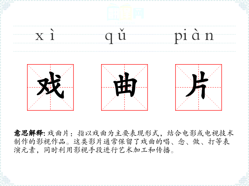 - 专业领域:在电影学、戏剧学等领域,戏曲片的研究涉及其艺术形式、历史发展和技术创新。
