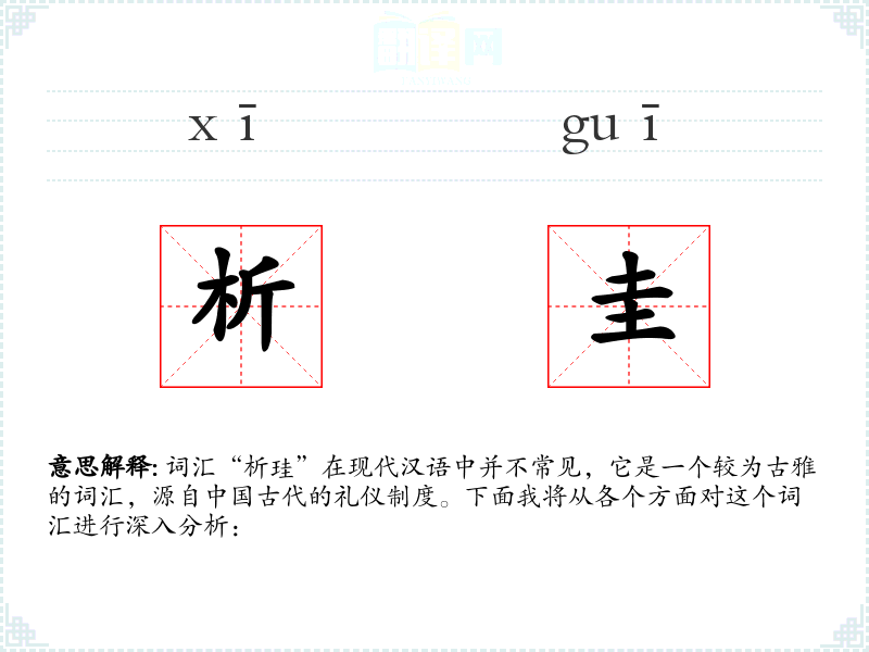 词汇“析珪”在现代汉语中并不常见,它是一个较为古雅的词汇,源自**古代的礼仪制度。下面我将从各个方面对这个词汇进行深入分析: